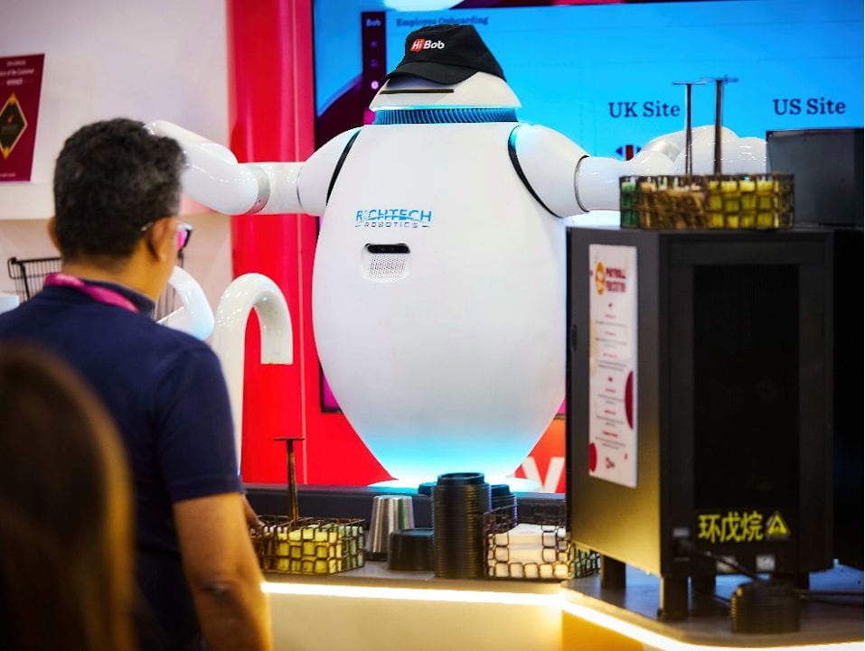 Inside the expo hall, in the center of traffic at Booth #2822, HiBob employees enthusiastically demonstrated and explained the payroll platform and other solutions while, at the other end of the booth, Adam the Robot coffee barista entertained booth-goers as bystanders snapped photos or recorded videos.